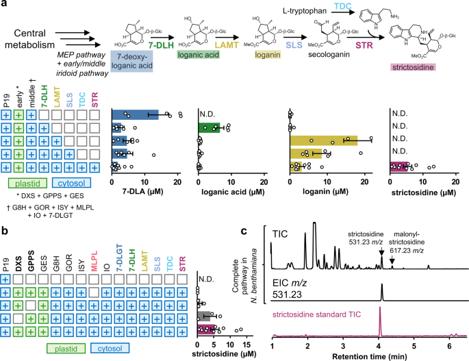 Reconstitution Of Monoterpene Indole Alkaloid Biosynthesis In Genome Engineered Nicotiana Benthamiana Communications Biology