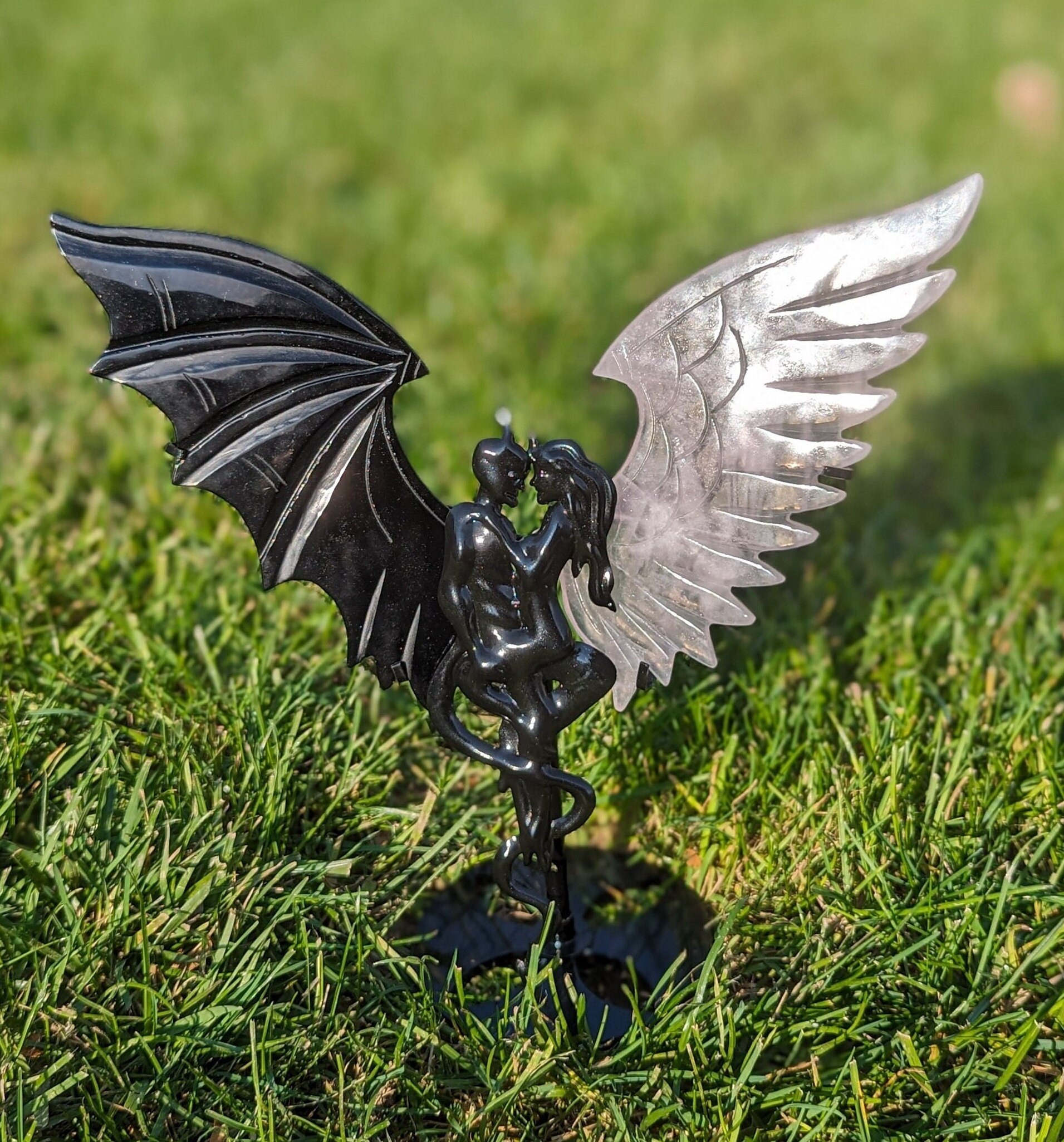 Matched Set Of Demon Angel Black Obsidian And Rose Quartz Etsy Israel